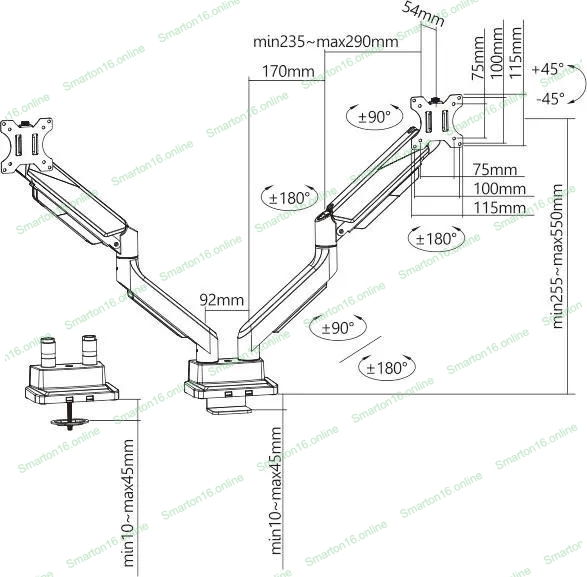 Кронштейн для мониторов Ultramounts UM718 серый 17"-35" макс.15кг крепление к столешнице поворот и наклон