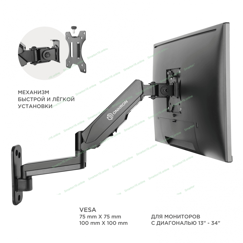 Кронштейн (держатель) ONKRON G150 для телевизора 13"-34" дюймов настенный, черный