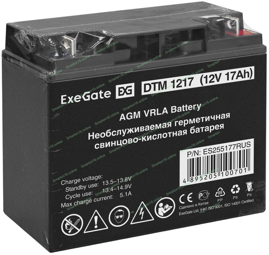 Батарея для ИБП ExeGate ES255177RUS DTM 1217/EXS12170 (12V 17Ah), клеммы под болт М5
