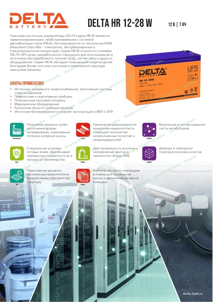Батарея для ИБП Delta HR 12-28 W (12V, 7Ah)