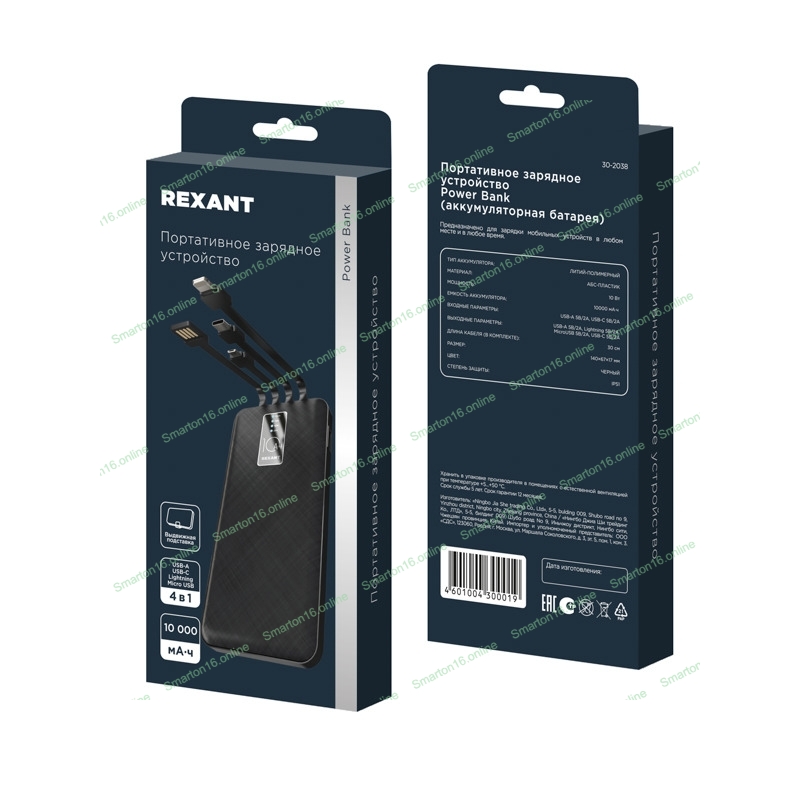 Портативный аккумулятор Rexant Power Bank (аккумуляторная батарея) 10000 mAh, черное