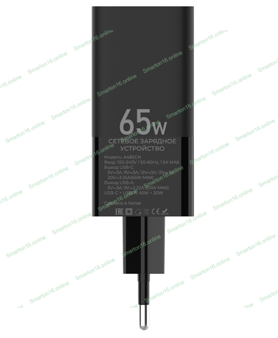 Описание: Универсальный сетевой адаптер c передовой технологией GaN. Оптимальное решение для зарядки ноутбука,планшета,смартфона. Разъем: USB+Type-C , входное напряжение: 100-240В, выходная мощность 65W. Поддержка быстрой зарядки, цвет черный.