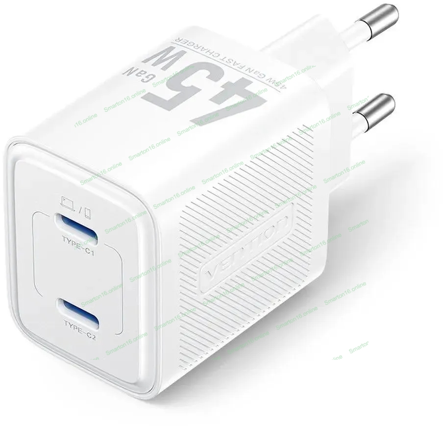 Сетевое зарядное устройство Vention на 2 порт USB С+C GaN 45W белый