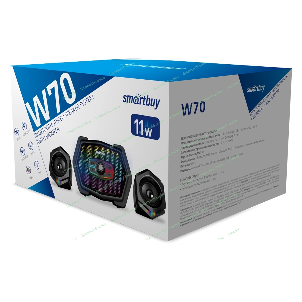 Акустическая система 2.1 Smartbuy W70, Bluetooth, 11Вт, RGb-подсветка, черный (арт. SBA-5150)