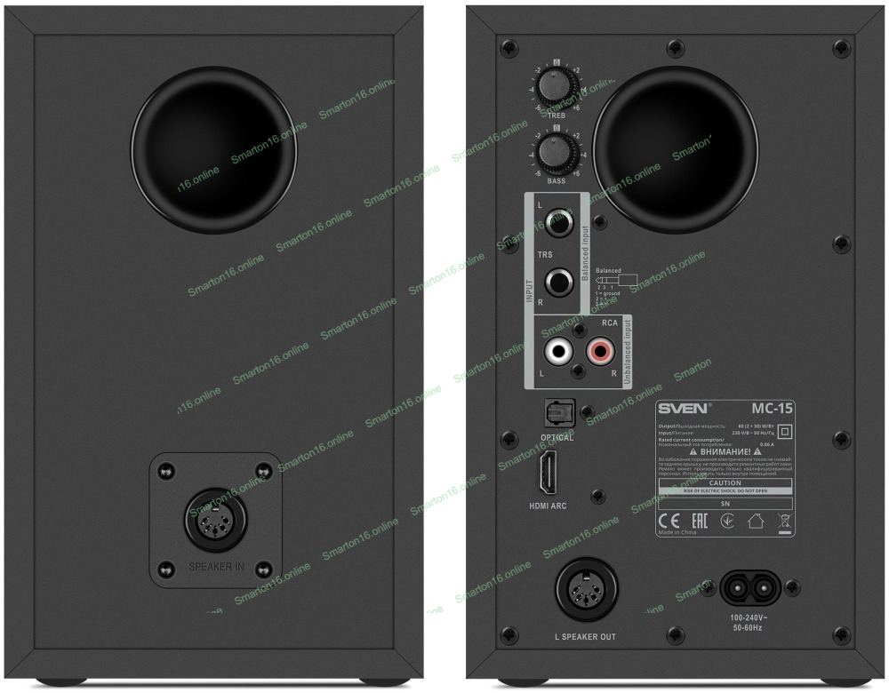 Акустическая система 2.0 АС SVEN MC-15, черный (60 Вт, Bluetooth, RCA, TRS, OPT, HDMI, AUX, вход наушников, пульт)