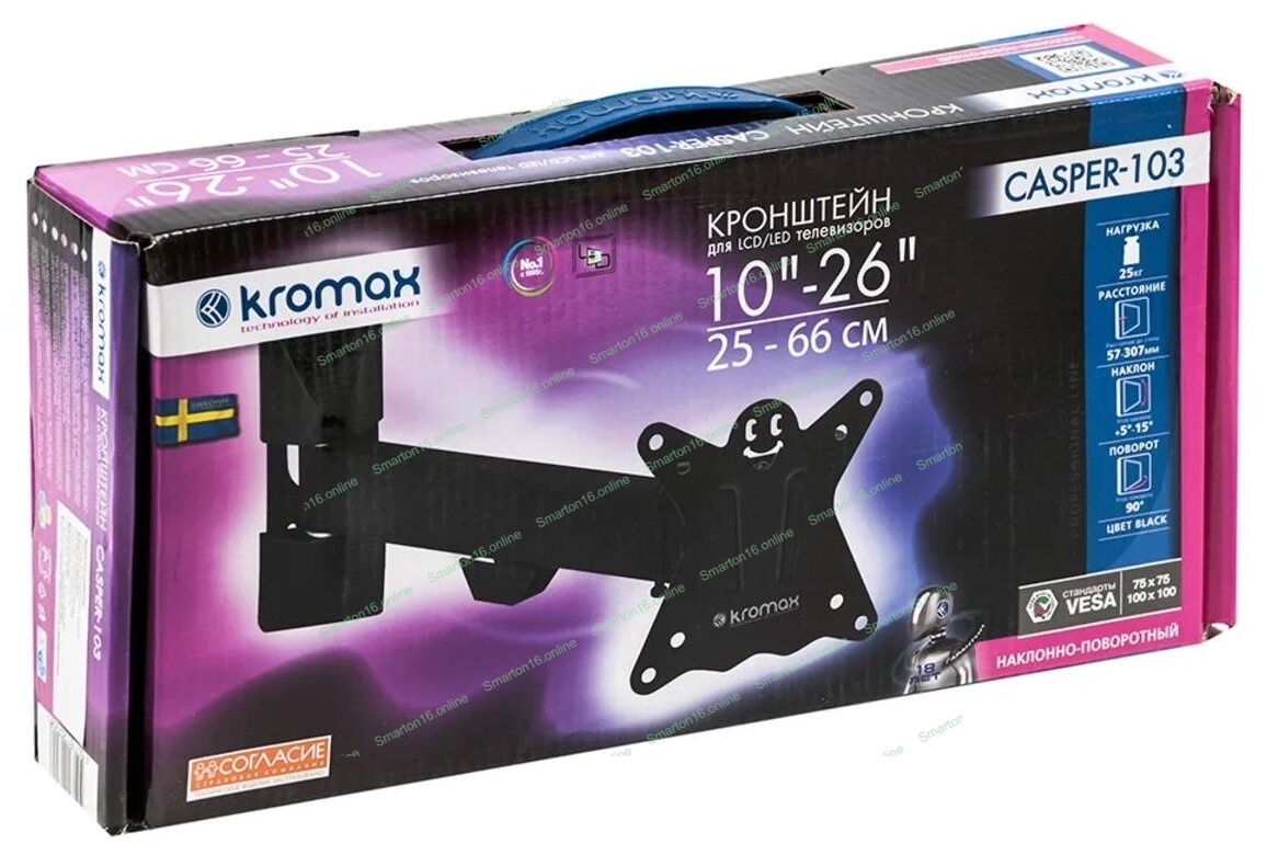 Кронштейн Kromax CASPER-103 черный, 10"-28", max 25 кг, VESA 100x100 мм