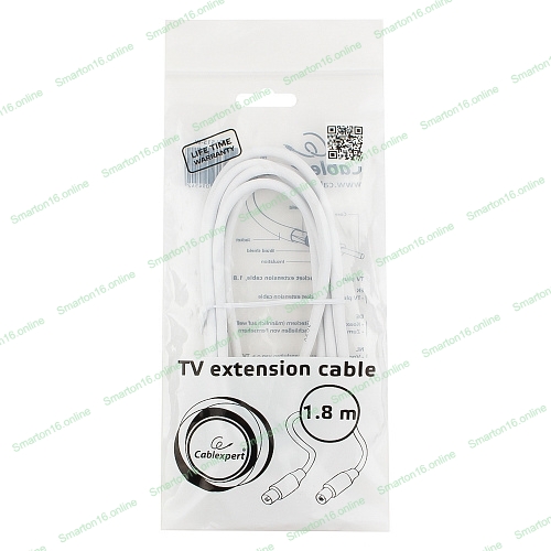 Кабель телевизионный Cablexpert CCV-515-W, Coaxial M/F, белый, 1.8м