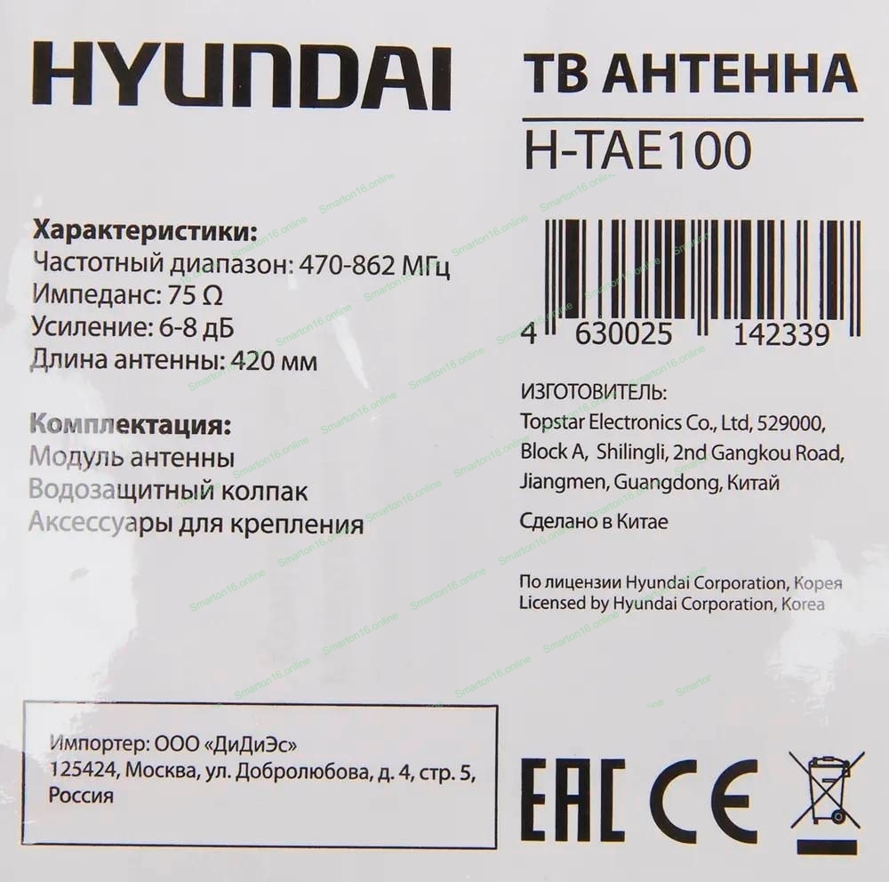 Антенна телевизионная Hyundai H-TAE100 9дБ пассивная серебристый