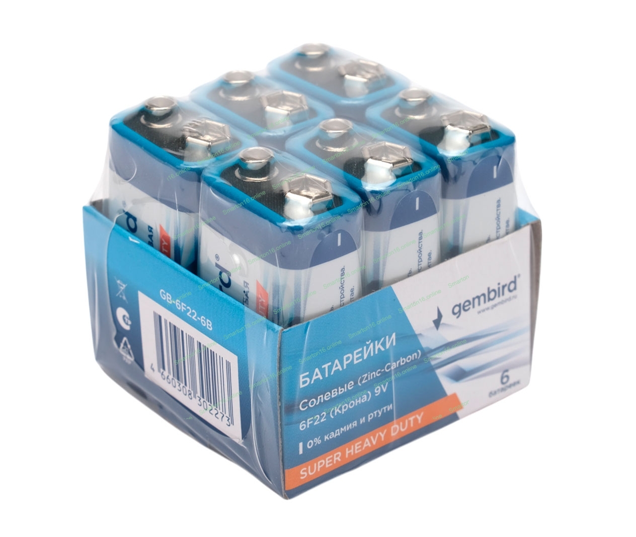Батарейки солевые Gembird Gb-6F22-6B, тип Крона(6F22), 6шт, коробка