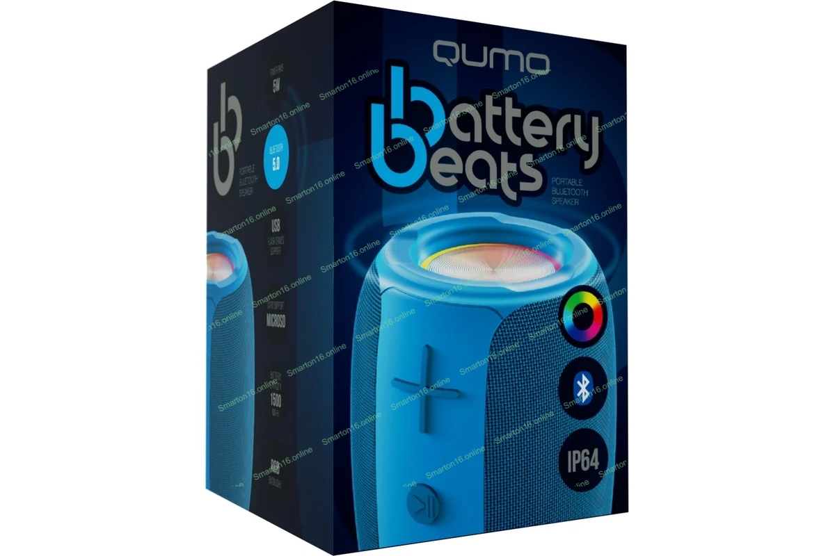 Колонка беспроводная QUMO BatteryBeats BT5.0 5Вт IP64 FM SD USB AUX подсветка 1500мА·ч синий