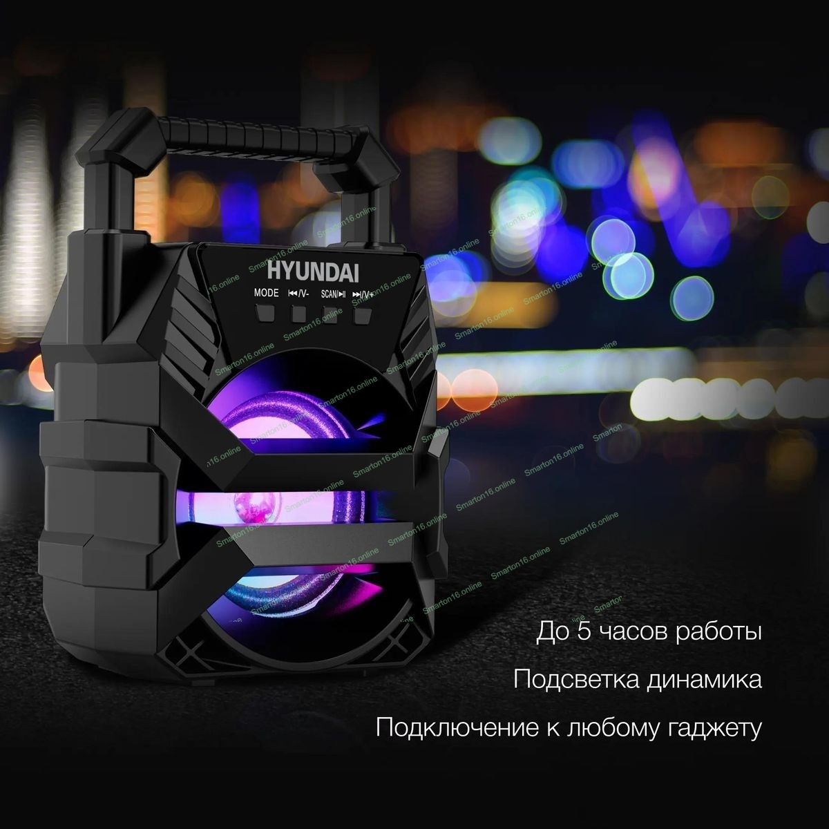 Колонка портативная Hyundai H-PS1000 черный 9 Вт 1.0 BT/USB 10м 500mAh