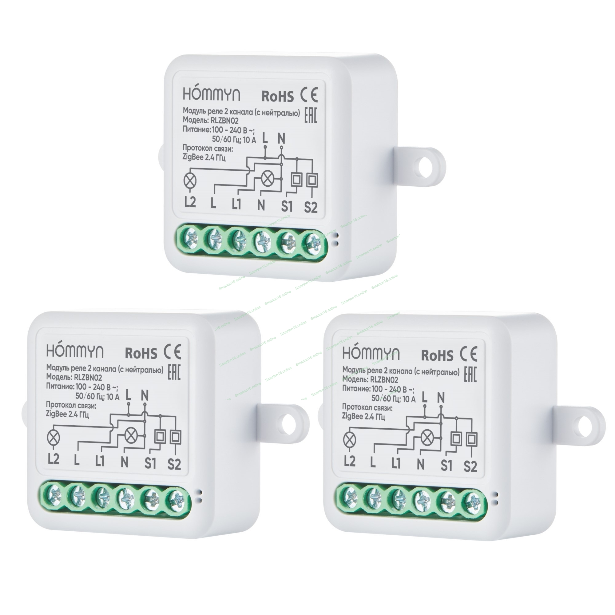 Комплект три умных реле (2 канала с нейтралью) HOMMYN 3RLZBN02