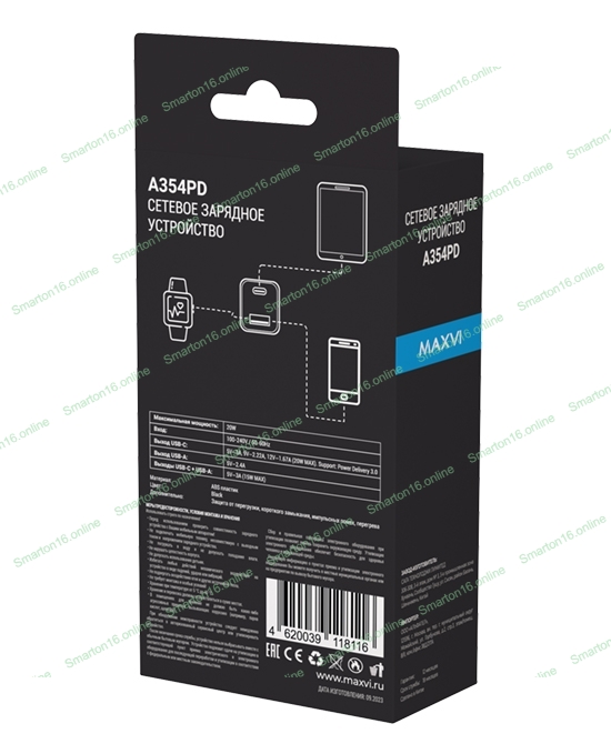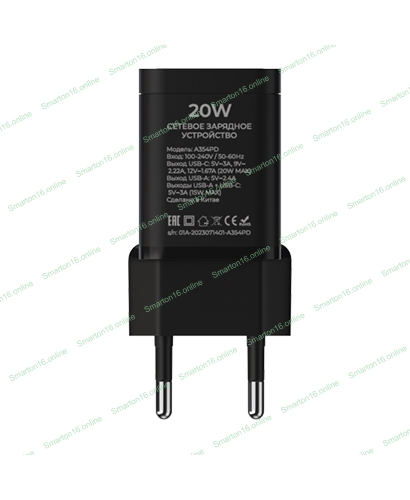 Сетевое зарядное устройство Maxvi A354PD Type-C 20W PD3.0 + USB 2.4A, черный