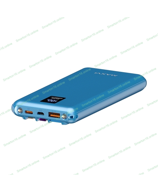 Портативный аккумулятор Maxvi PB10-11 10000 мАч blue 3A, встроенные кабели USB A/Type-C/Lightning
