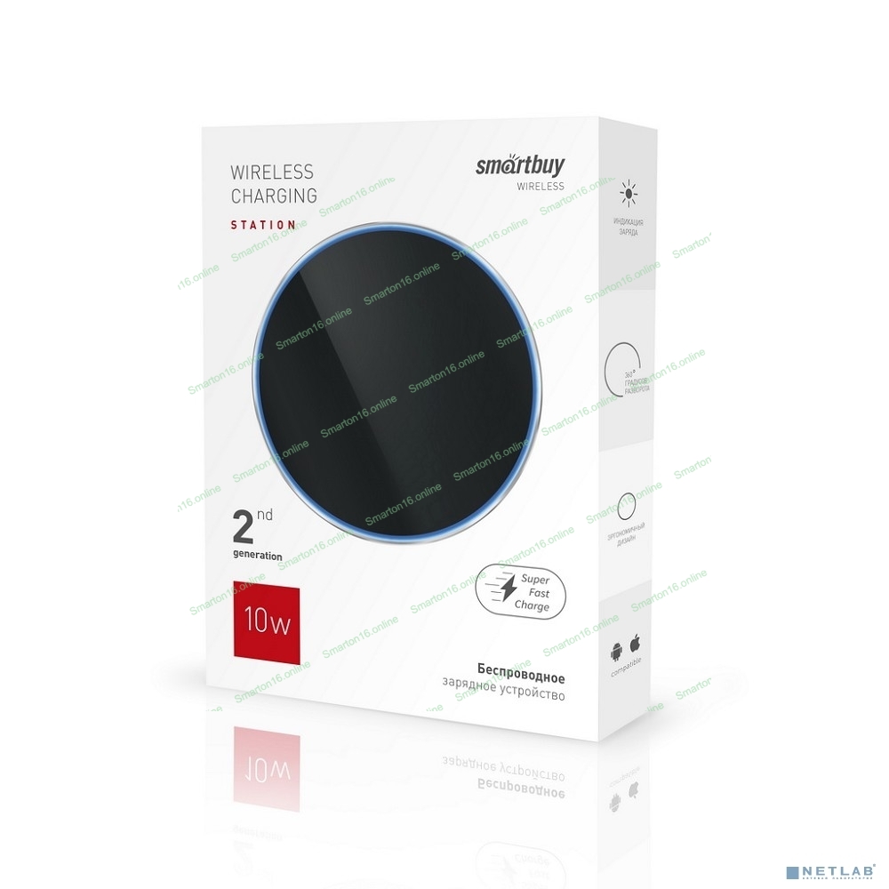 Беспроводное ЗУ настольное Smart buy, 10 Вт, горизонтальное, 5-9В, индикация,2 gen., (SBP-W-054)