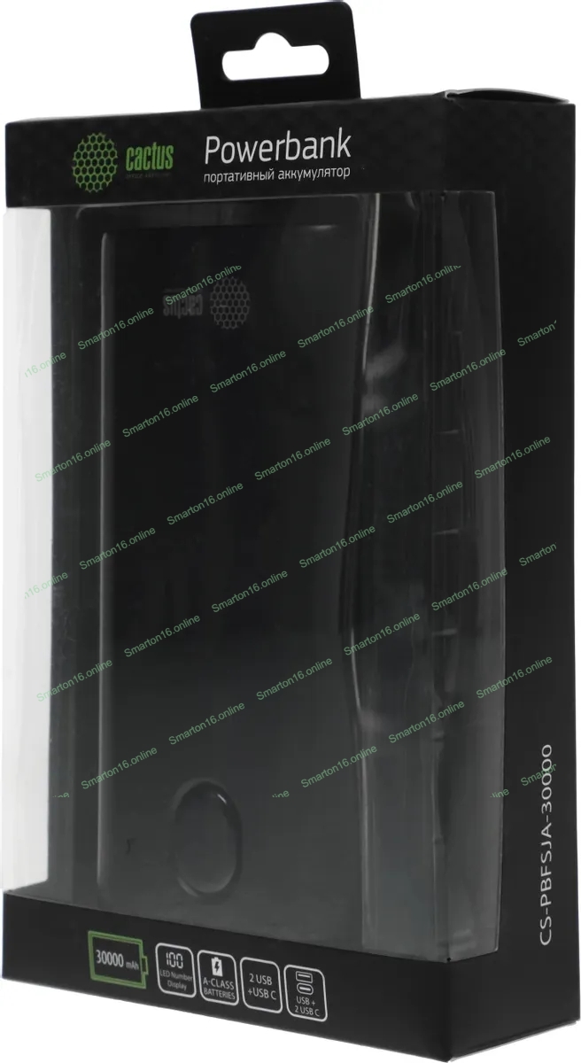 Портативный аккумулятор Cactus CS-PBFSJA-30000 30000mAh 4.5A 2xUSB-A/USB-C черный