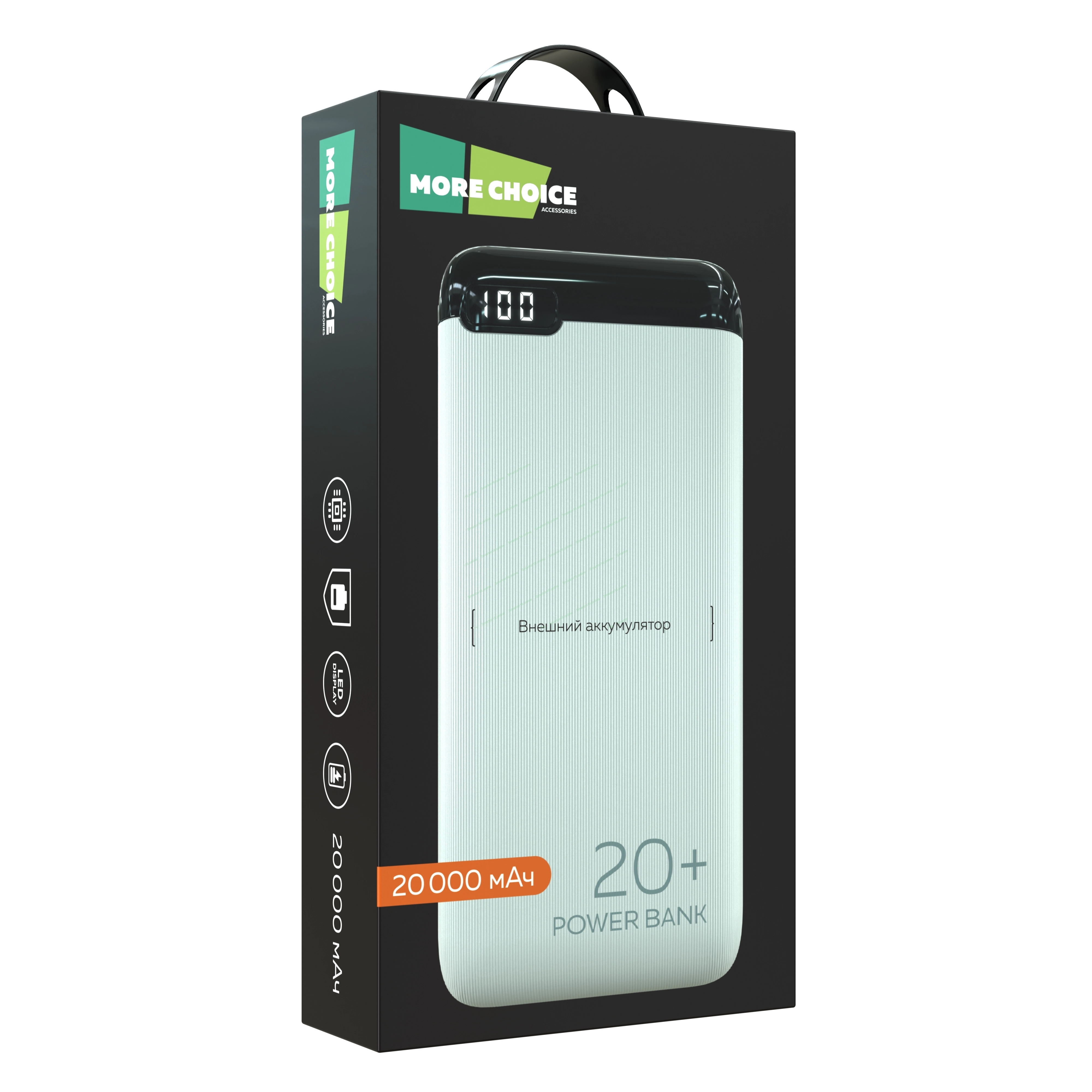 Портативный аккумулятор More choice (4620202550514) PB19-20 2USB 2.1A - 20000mAh белый