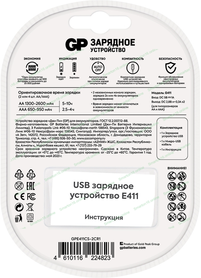 Зарядное устройство GP Е411CS-2CR1 AA/AAA NiMH блистер