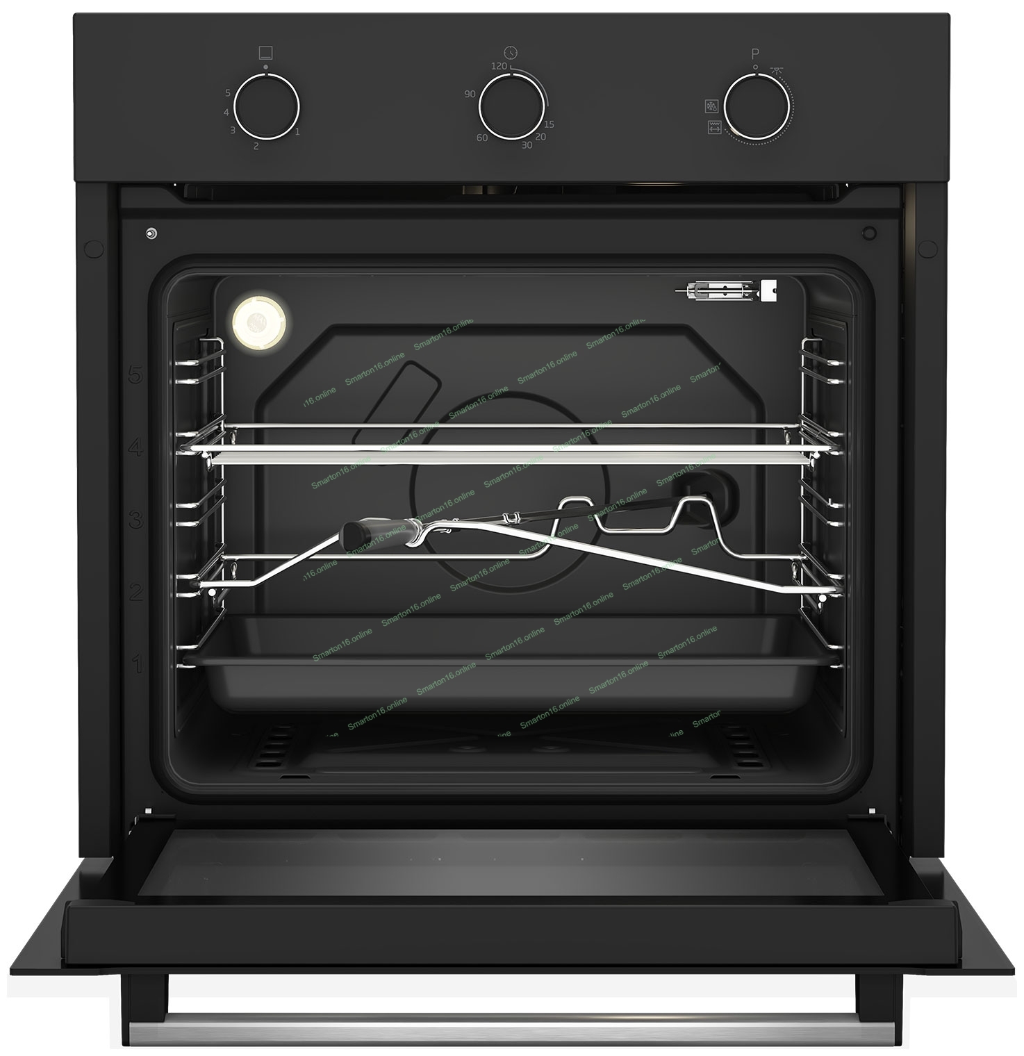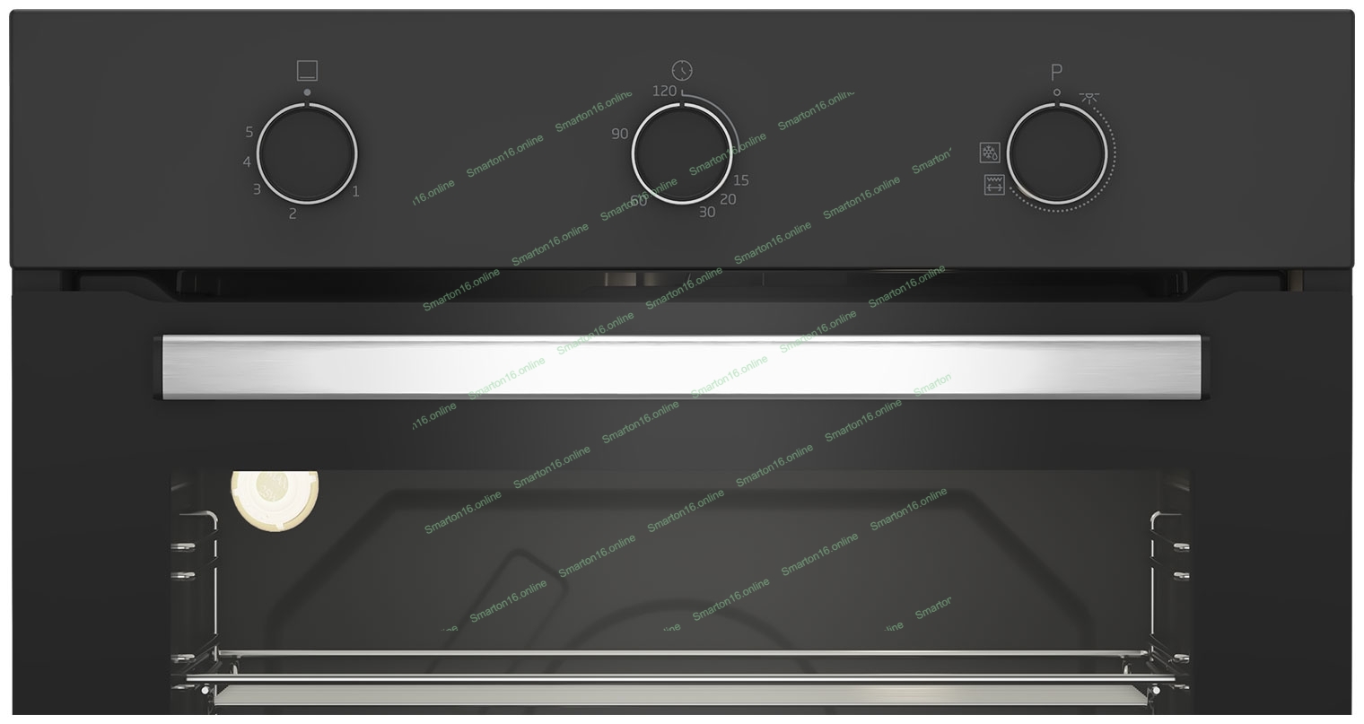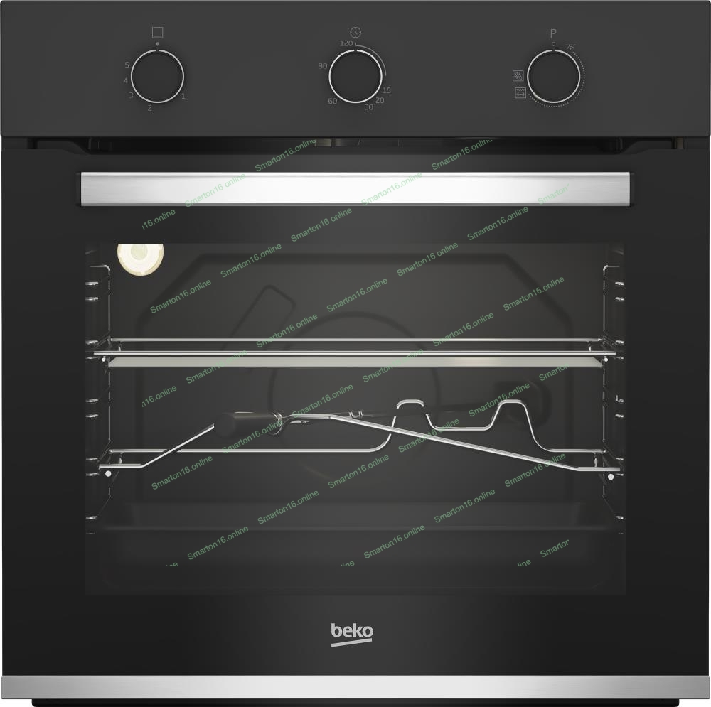 Газовый духовой шкаф Beko BBIH12100BC с откидным электрическим грилем и конвекцией; автоматический электроподжиг; поворотные переключатели; металлические направляющие; объем - 72л; 3 стекла дверцы; 1 решетка; 1 противень; вертел. Цвет черный; Материал панели управления Металл черный