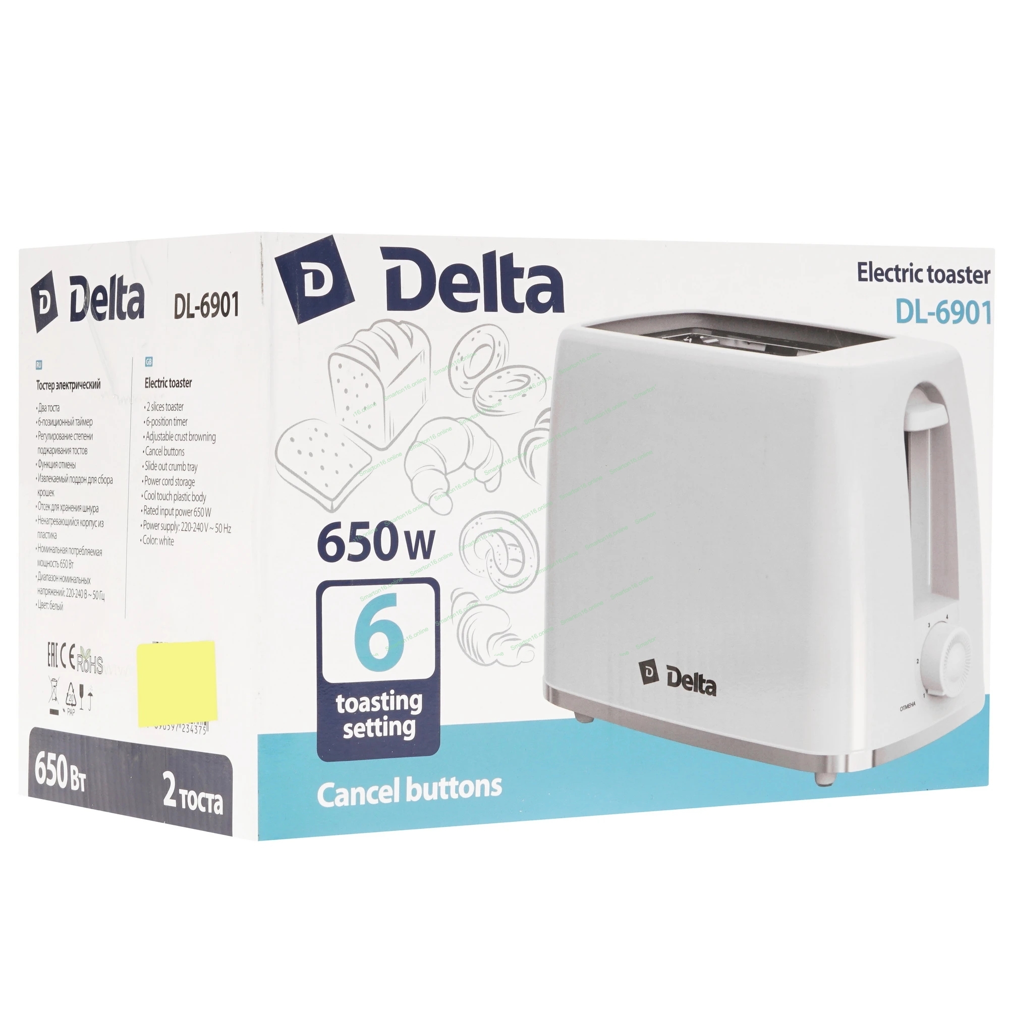 Тостер DELTA DL-6901 белый, 650 Вт