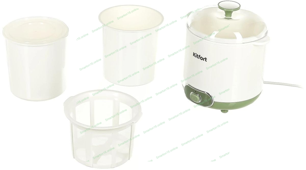 Йогуртница Kitfort KT-2005 20Вт 1б. 1500 мл белый/зеленый