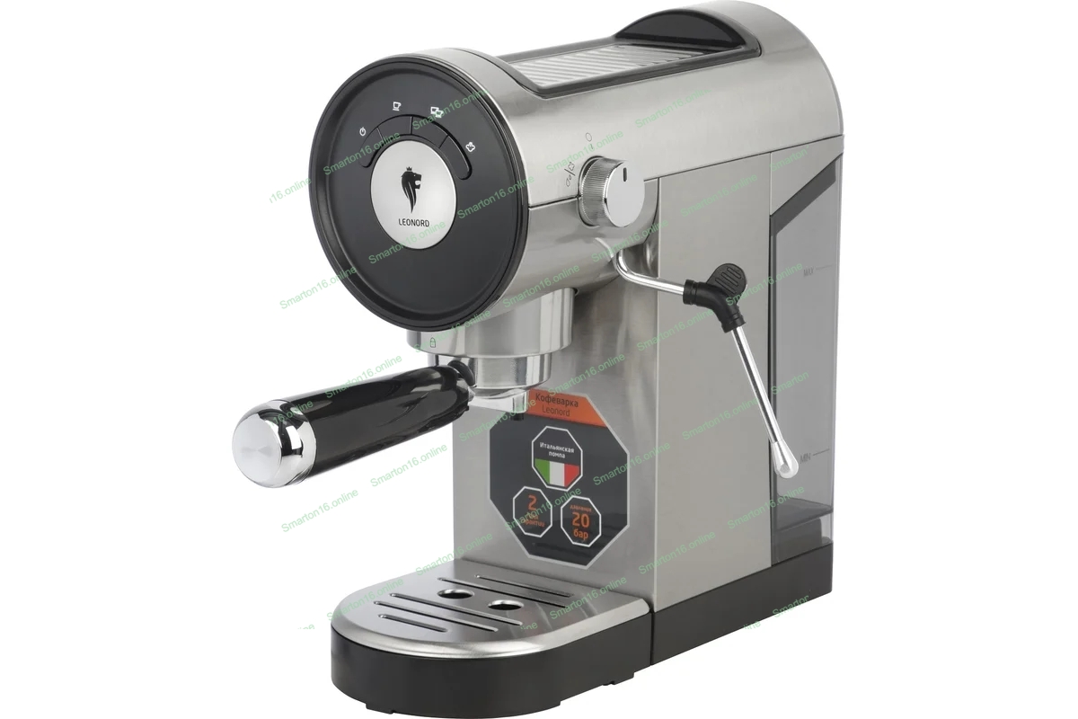 Кофеварка рожковая LEONORD LE-1749 (108134) черный/стальной, исп. кофе - молотый, 0,8 л, 1360 Вт, 20 бар