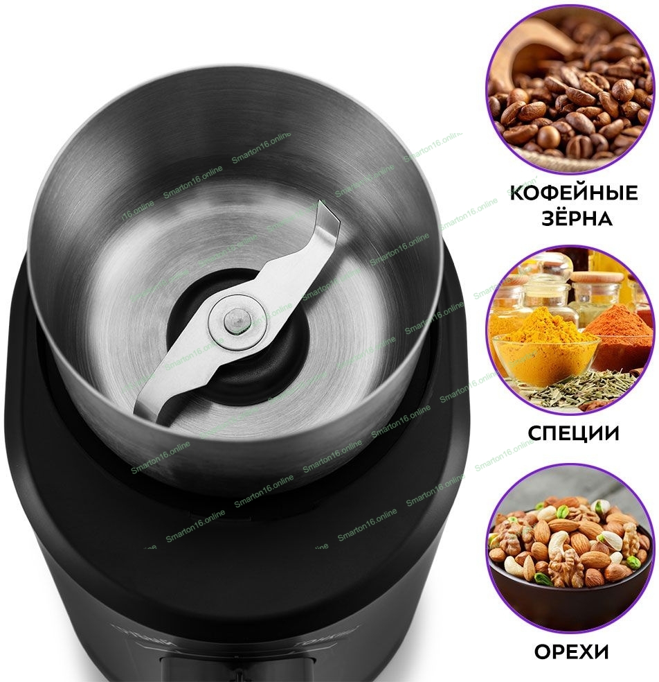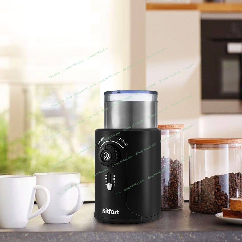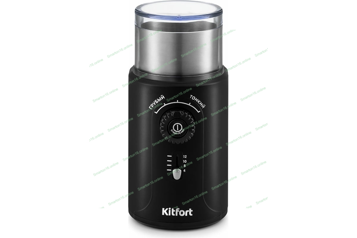 Кофемолка Kitfort KT-747 200Вт сист.помол.:ротац.нож вместим.:70гр черный/серебристый