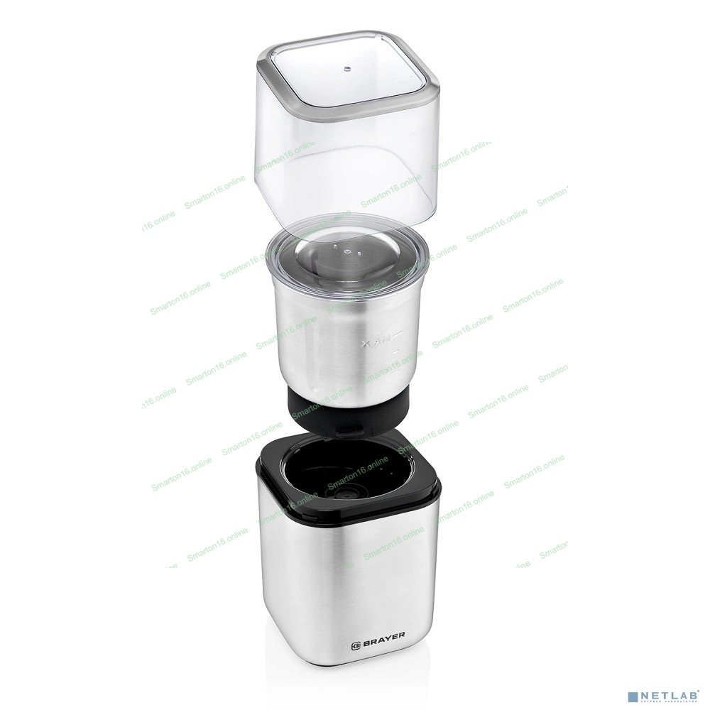 Кофемолка BRAYER BR1180, 2 ножа для мяг. и твер., 70 г.,Мощн. 200 Вт, нерж. корп, нажатием на крышку