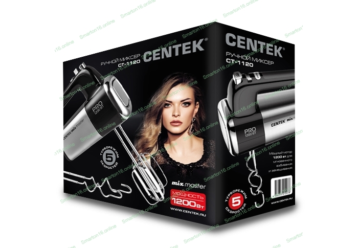 Миксер Centek CT-1120 черный/сталь 1200 Вт,, 5 скоростей+турбо, взбивание/замешивание