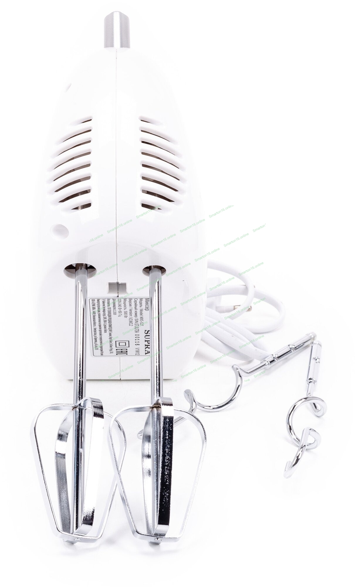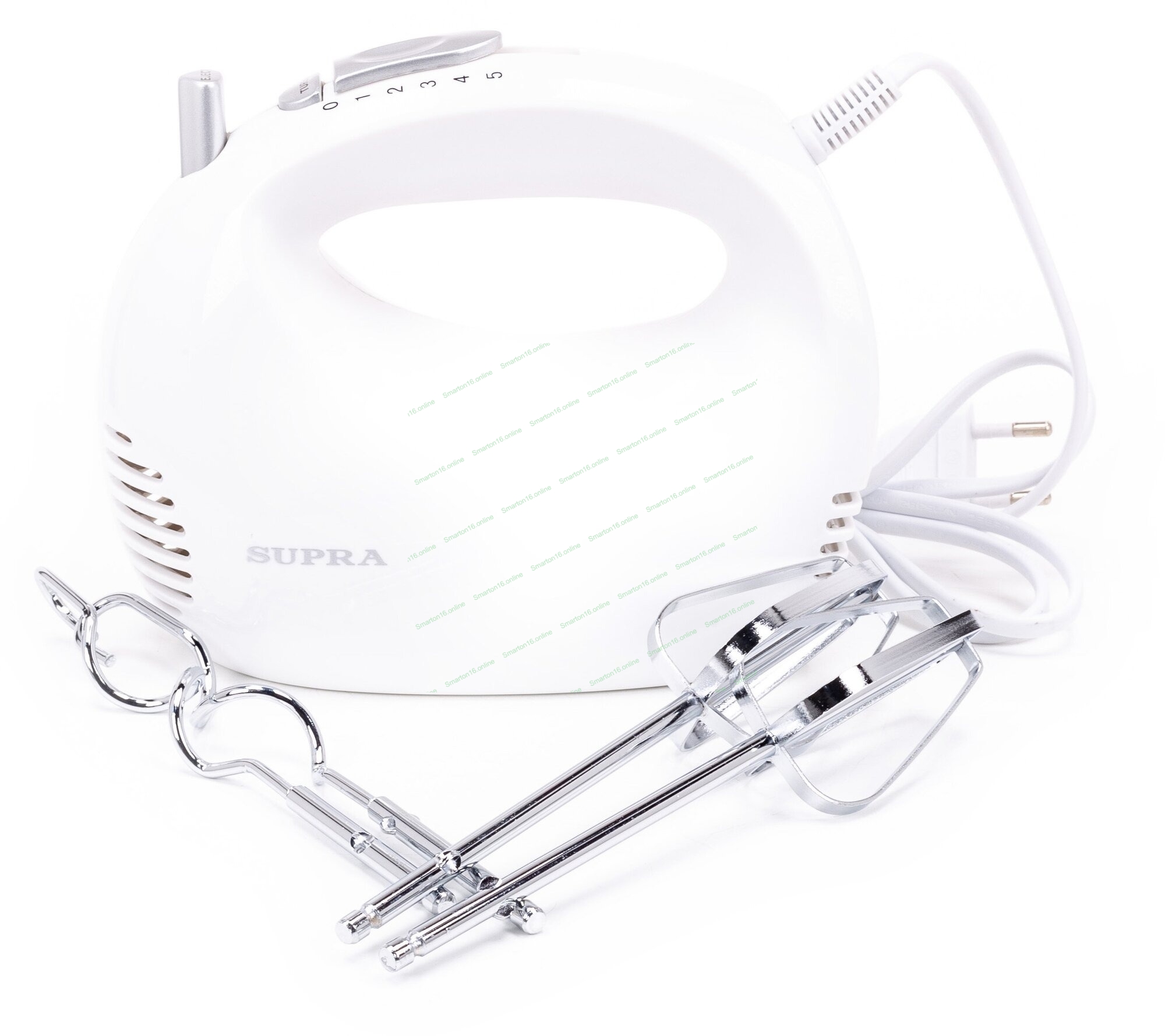 Миксер SUPRA MXS-527 500 Вт.Режим Турбо. 5 скоростей. Две насадки: для взбивания яиц и крема и для замеса тяжелого теста. белый.