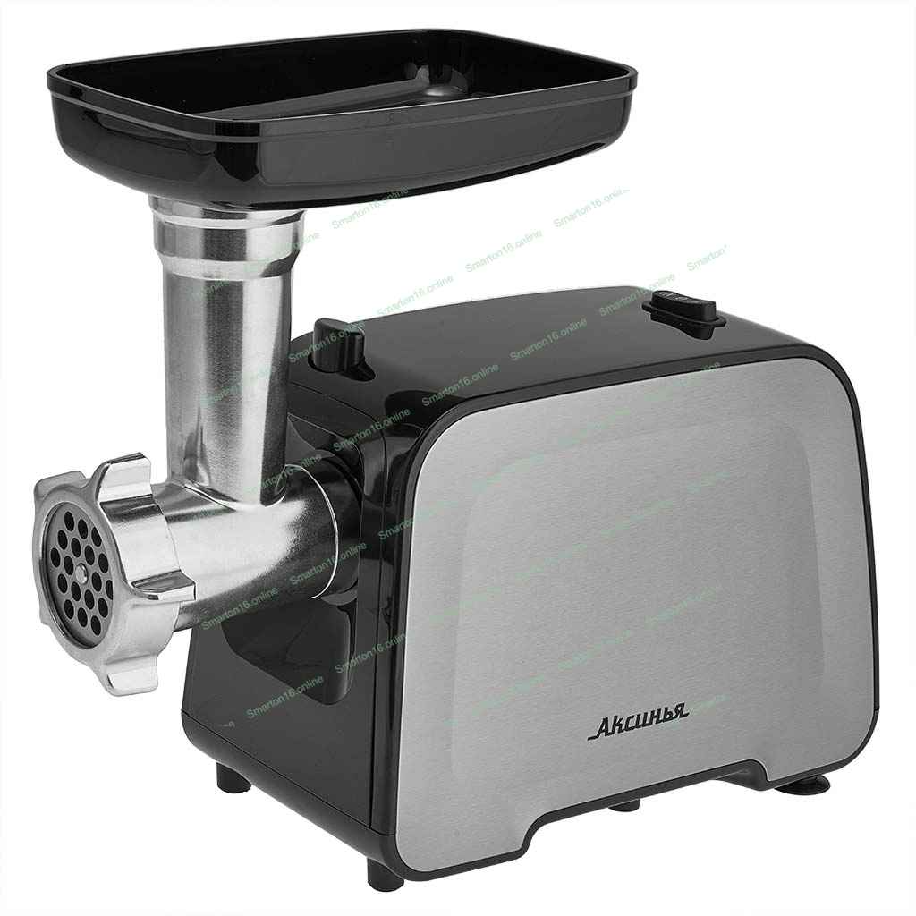 Мясорубка электрическая АКСИНЬЯ КС-2006С черный, 2300 Вт, 2.2 кг/мин, реверс, защита от перегрузки, металлический лоток, насадки - 6