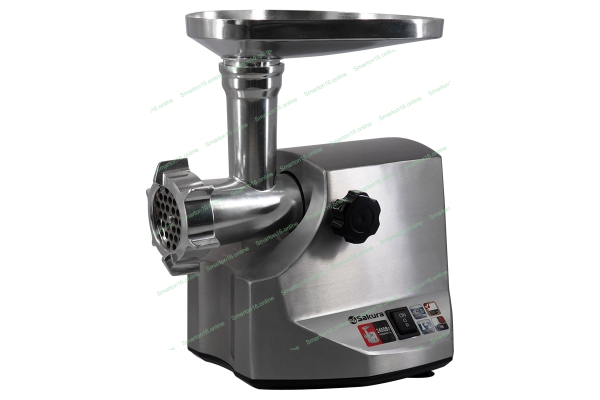 Мясорубка электрическая Sakura SA-6411 Professional серый, 2400 Вт, 2.5 кг/мин, реверс, защита от перегрузки, насадки - 5