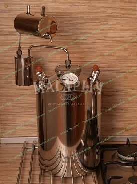 Дистиллятор МАГАРЫЧ Премиум 12 БКДР дистиллятор МАГАРЫЧ Премиум 12 БКДР, объем 12л, большая крышка, деревянные ручки, термостат, сухопарник. Производительность: 2 л./ч. Материал: пищевая нержавейка. Тип охладителя: проточный. Серия Премиум.