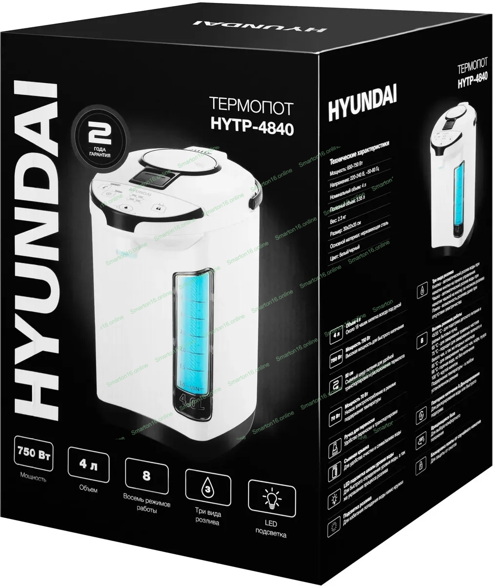 Термопот Hyundai HYTP-4840 4л, 750 Вт, белый/черный