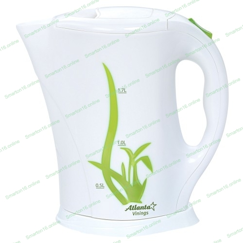 Чайник электрический Atlanta ATH-2305Тэн, 1.7 л, 2000 Вт, белый с зеленым, автомат откл при закипании, защита от перегрева воды, фильтр