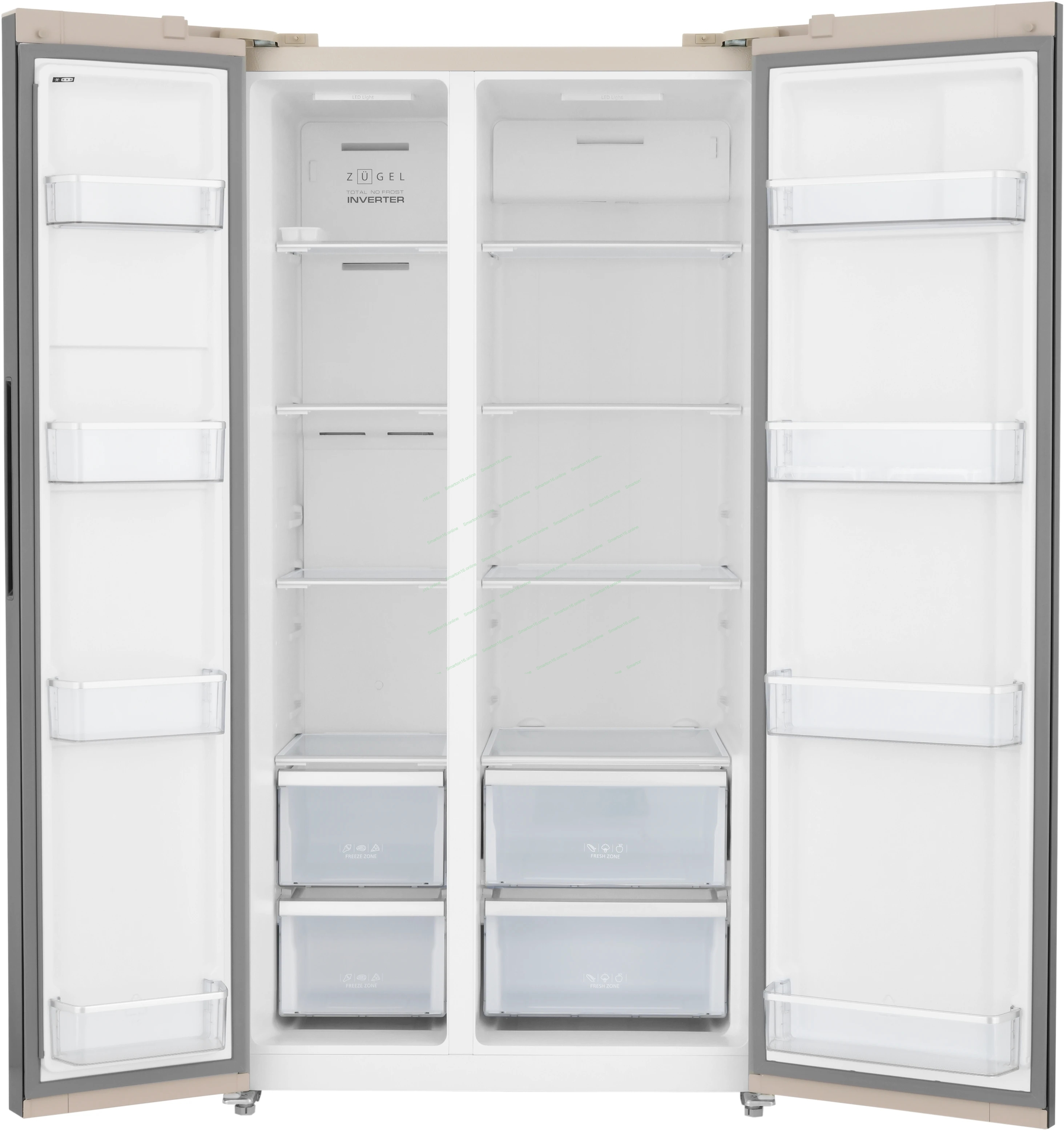 Холодильник Zugel ZRSS630C бежевое стекло двухкамерный 377/193л морозилка сбоку, No Frost, Side by Side