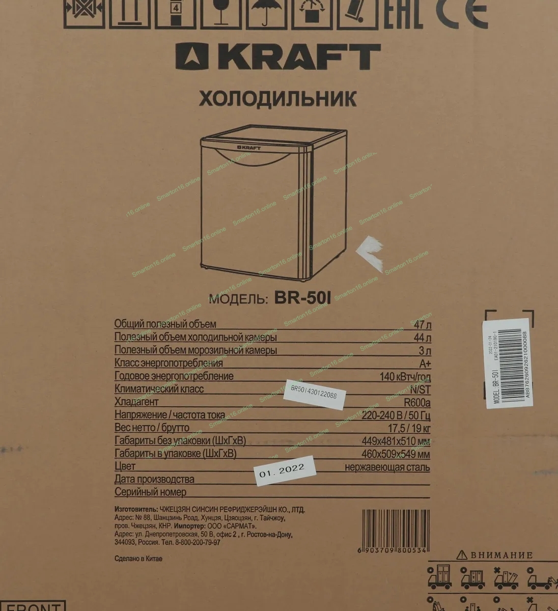 Холодильник Kraft BR-50 I серебристый однокамерный 44/3л морозилка сверху
