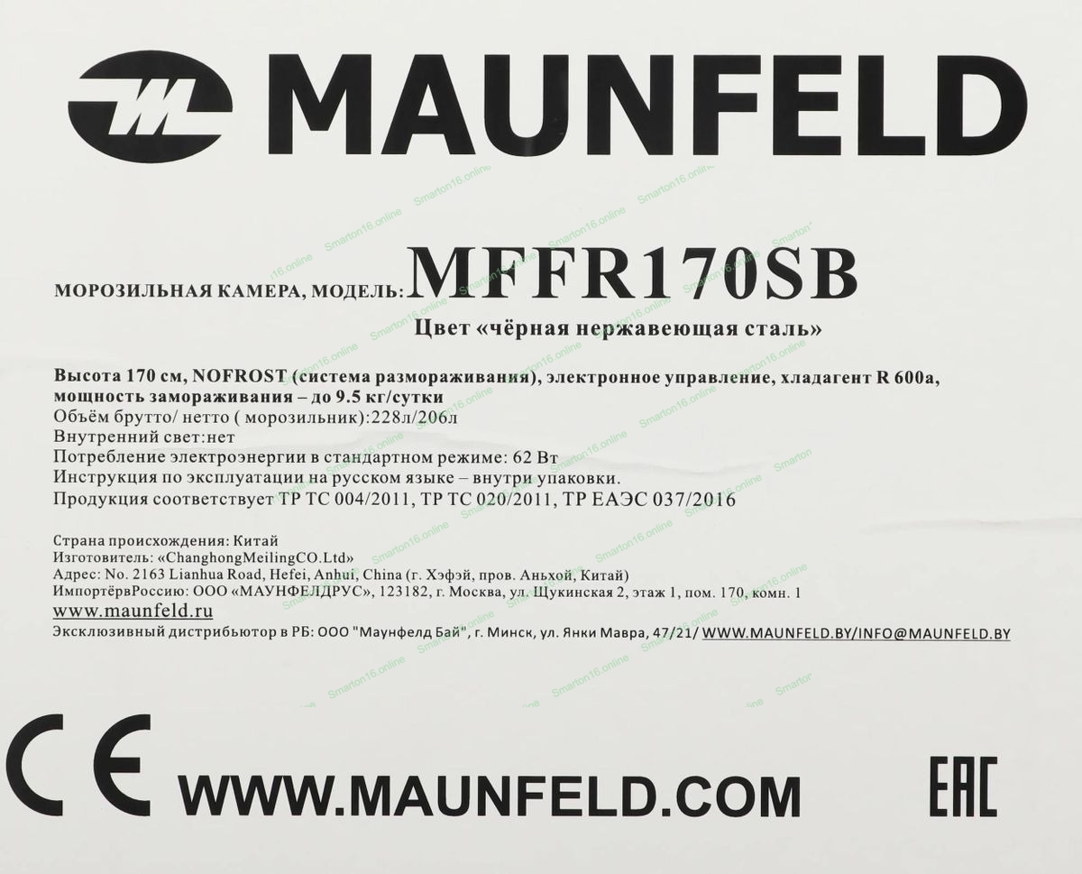 Морозильная камера Maunfeld MFFR170SB, черный, 206л, 4 ящика, 2 полки