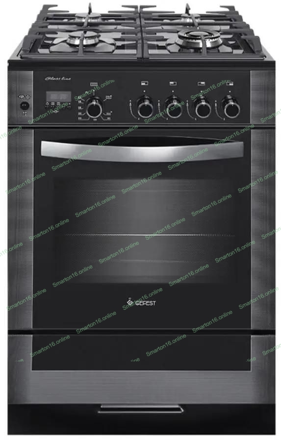Таймер электронный многофункциональный, газ-контроль духовки, газ-контроль горелок стола, 1 двухзонная горелка, электророзжиг горелок стола и духовки, розжиг интегрирован в ручки управления, гриль-горелка, вертел с электроприводом, шашлычница, терморегулятор духовки, двойная подсветка духовки, съёмные проволочные направляющие, чугунные решетки, выдвижной ящик, ножки регулировочные. Стеклянный фасад черного цвета, стол из жаропрочного стекла. Без крышки. Объем духовки - 52 литра.
