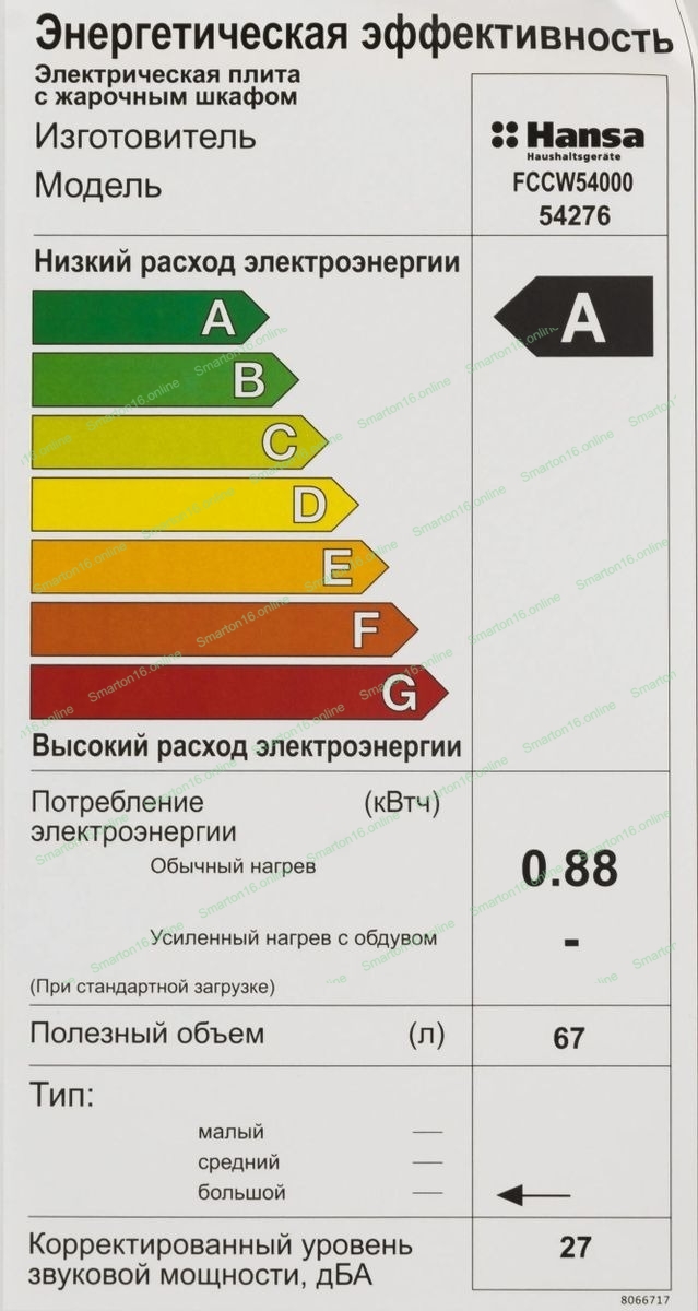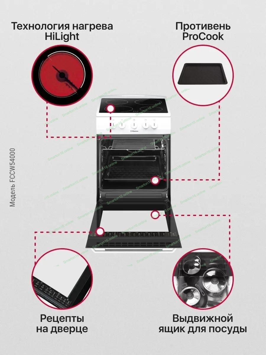 Плита электрическая Hansa FCCW54000 белый, конфорок 4 шт, духовка 68 л, 50 см x 85 см x 60 см