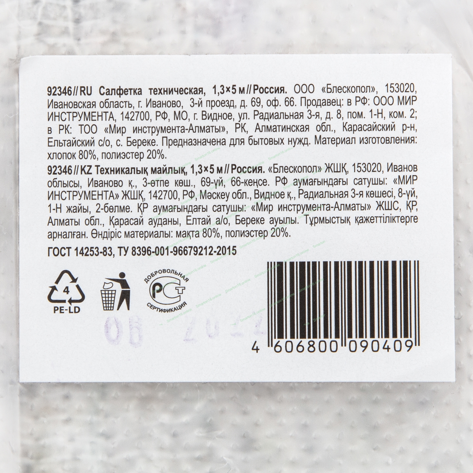 Салфетка техническая, 1,3х5 м Россия