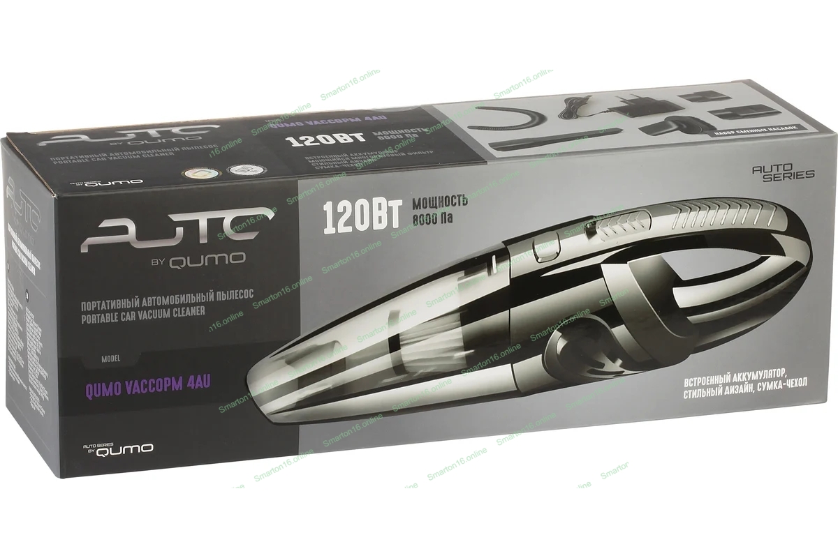 Пылесос автомобильный QUMO VaccoPM 4AU черный, 113/120 Вт, уборка сухая, пылесборник контейнер 0.5 л