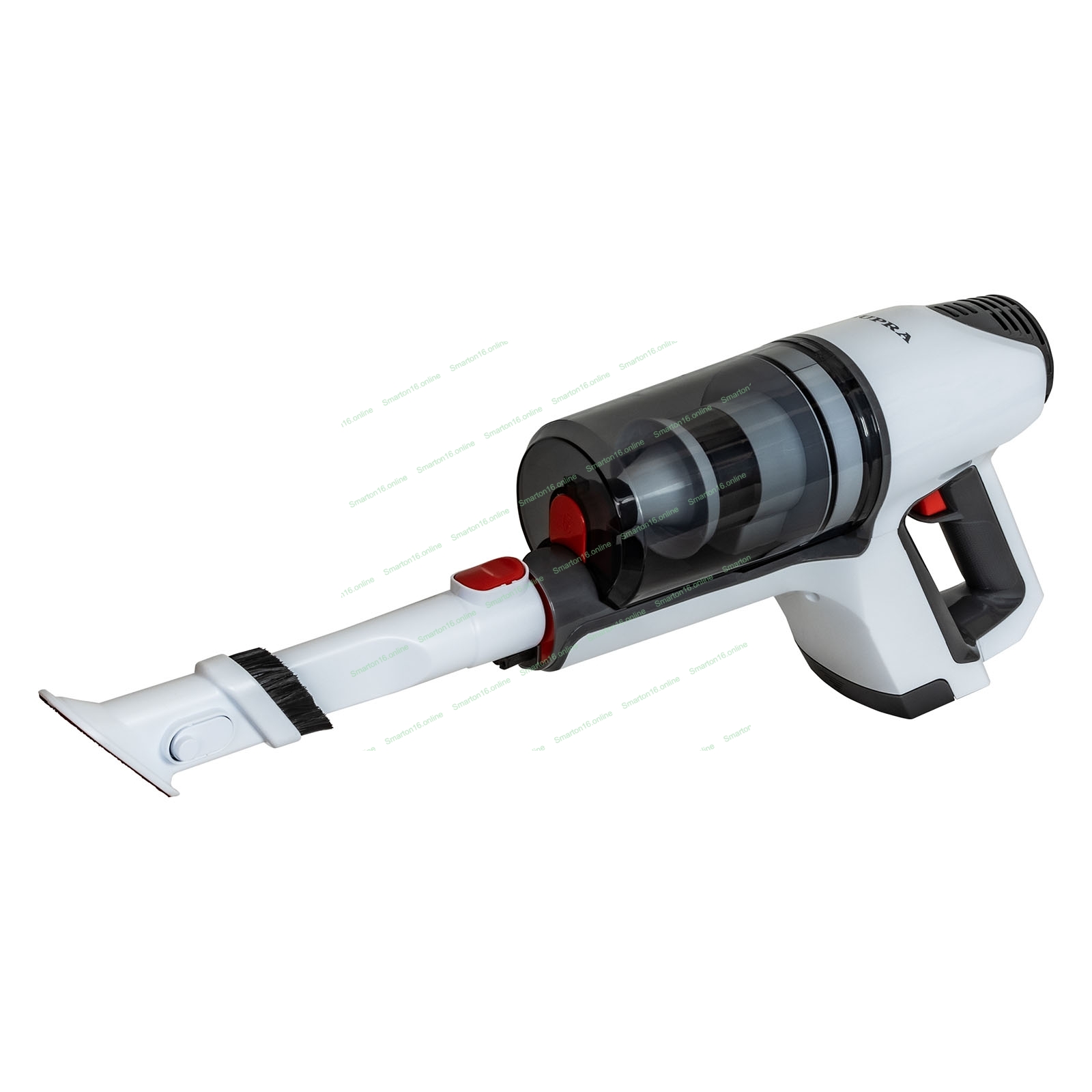 Пылесос вертикальный SUPRA VCS-5083 белый, питание от аккумулятора, 350 Вт, уборка сухая, пылесборник 0.6 л, работа от АКБ max 30 мин.