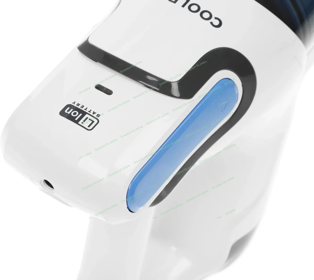 Пылесос вертикальный Coolfort CF-3006 белый/голубой, питание от аккумулятора, 130 вт, уборка сухая, пылесборник 0.5 л, работа от АКБ max 30 мин.
