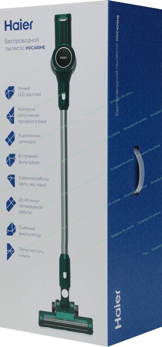 Пылесос вертикальный Haier HVC400HE зеленый, питание от аккумулятора, 400 Вт, уборка сухая, пылесборник 0.8 л