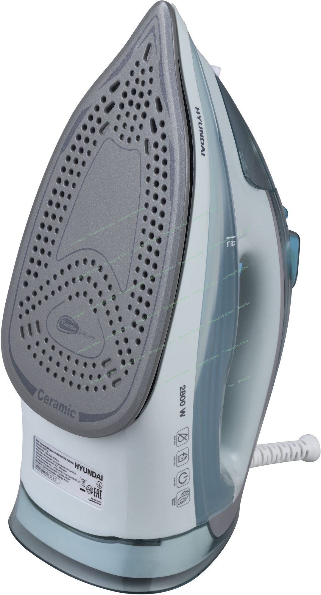 Утюг Hyundai H-SI01340 голубой/белый, 2800 Вт, 35 г/мин, 220 г/мин, 400 мл