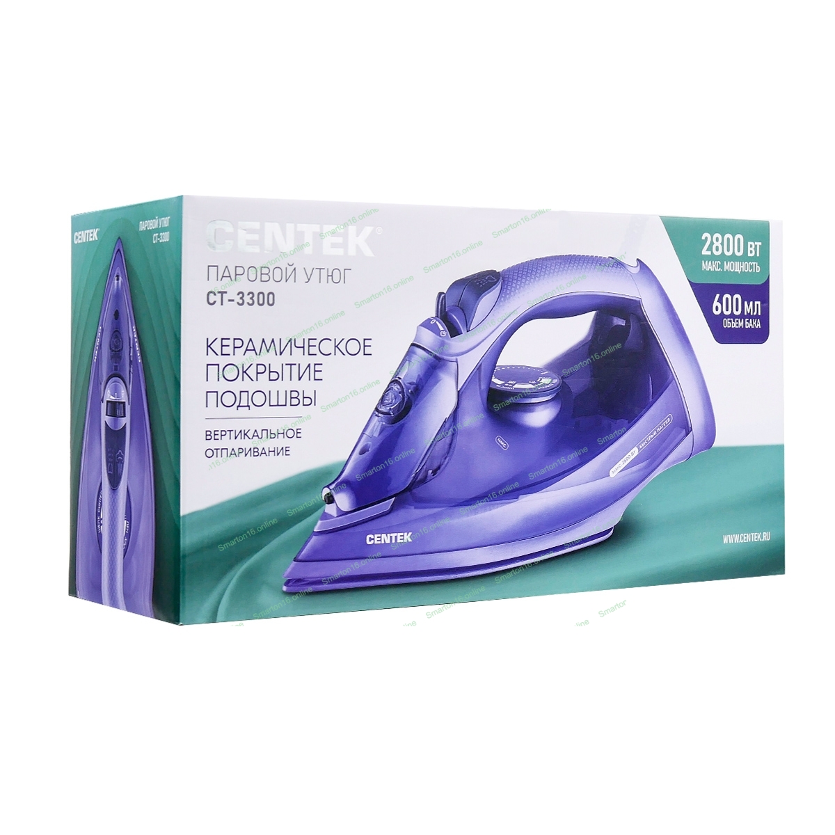 Утюг Centek CT-3300 фиолетовый, 2800 Вт, 60 г/мин, 190 г/мин, 600 мл