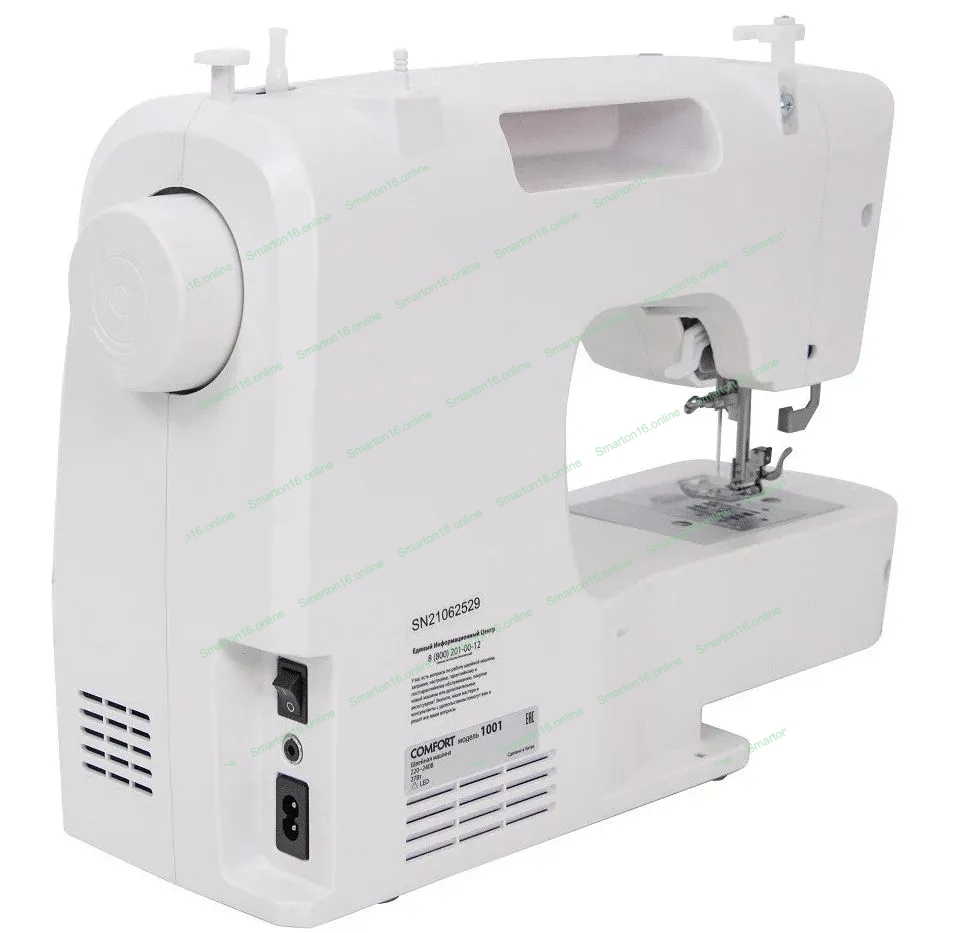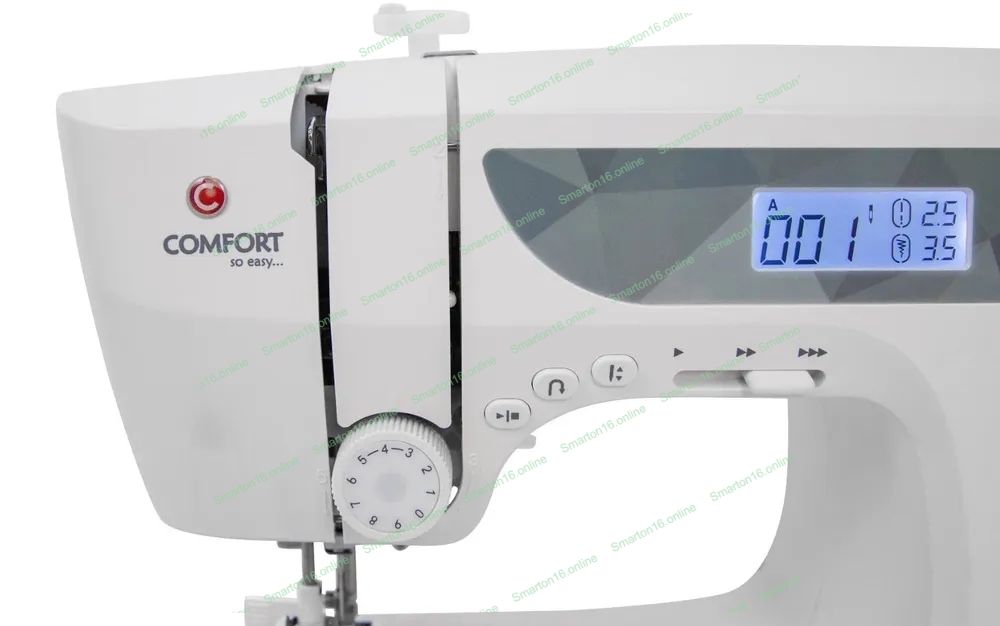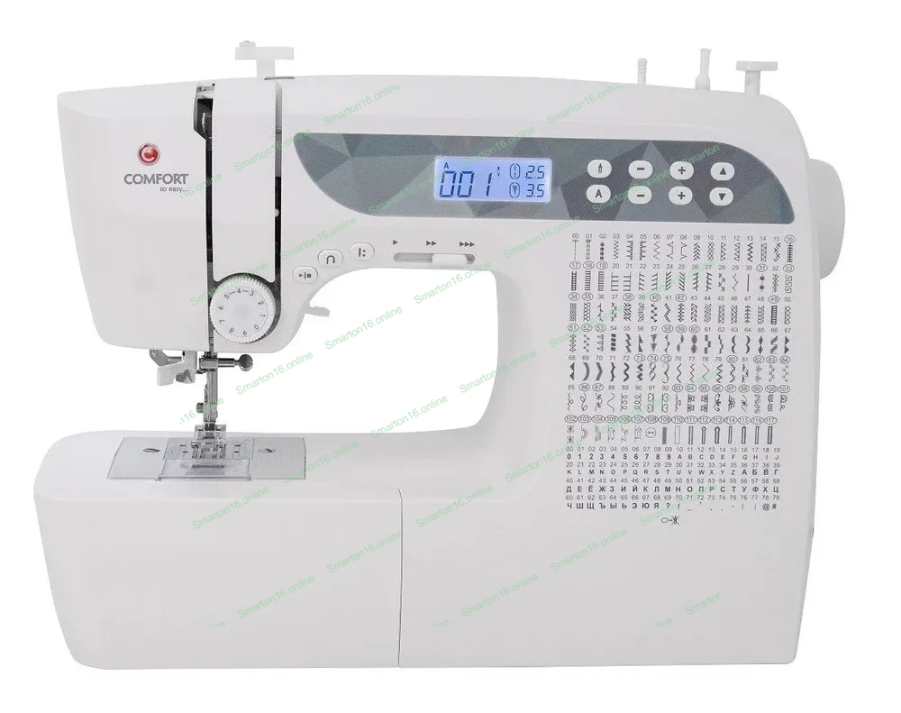 Швейная машина Comfort 1001 200 операций, 9 видов петель, жк дисплей, нитевдеватель, горизонтальный челнок, русск./англ. алфавит, плавная регулировка скорости на корпусе, регулятор давления лапки, нитевдеватель, возможность шитья двойной иглой, возможность шитья без педали.