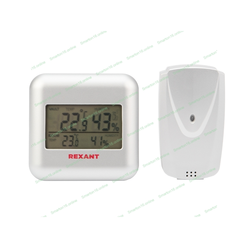 Термометр электронный Rexant S3341BF с часами и беспроводным выносным датчиком