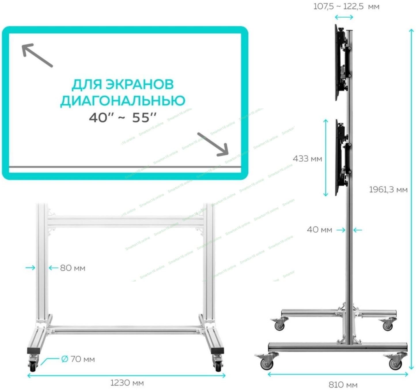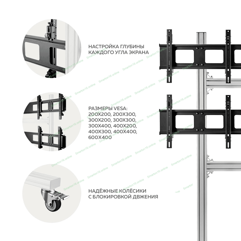 Напольный мобильный стенд ONKRON FSPRO2L-22 для видеостен 2х2 4 x 40”- 50" серебристый